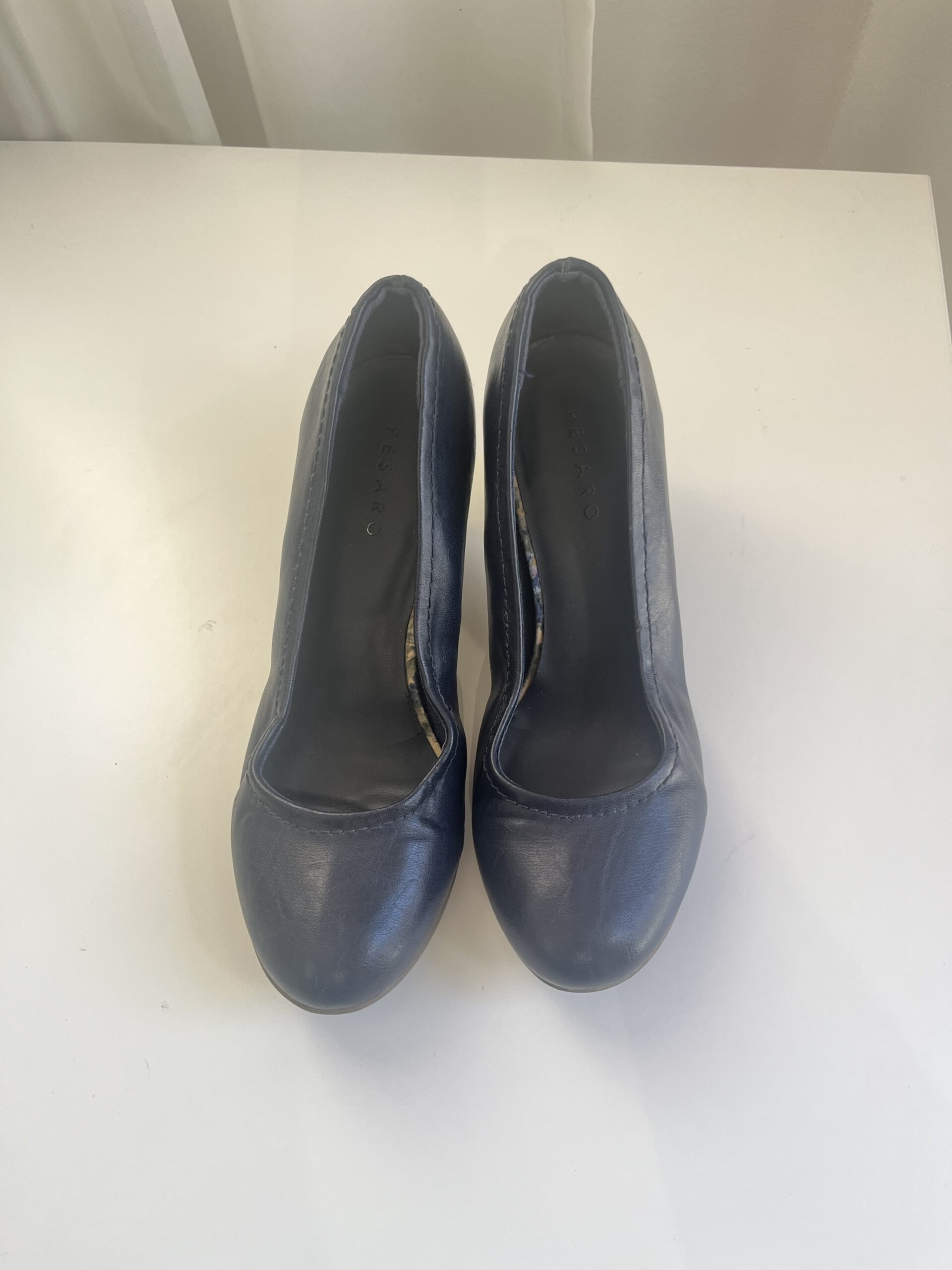 Pantofi Pesaro, culoare bleumarin, toc stabil 6cm, marime 36, interior 23cm, purtati, stare excelenta