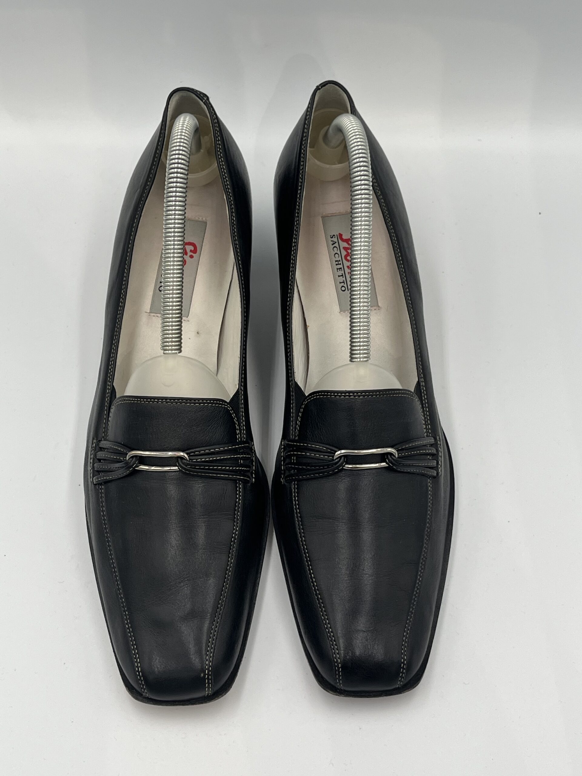 Pantofi slip-on Sioux Saccheto, integral din piele naturala, lucrati manual, culoare negru, marime 41, interior 27-27,5cm, toc 4cm, purtati, stare excelenta