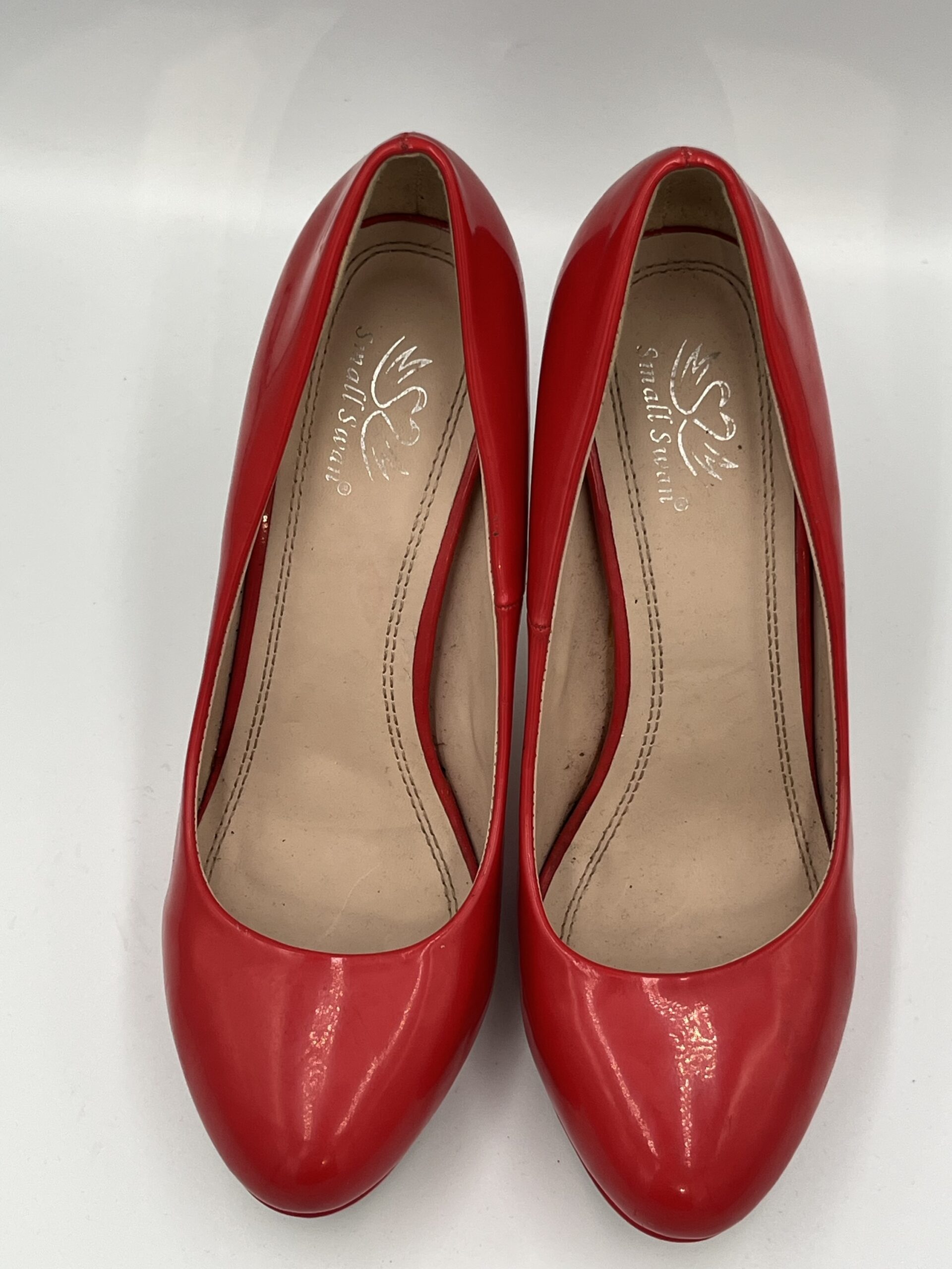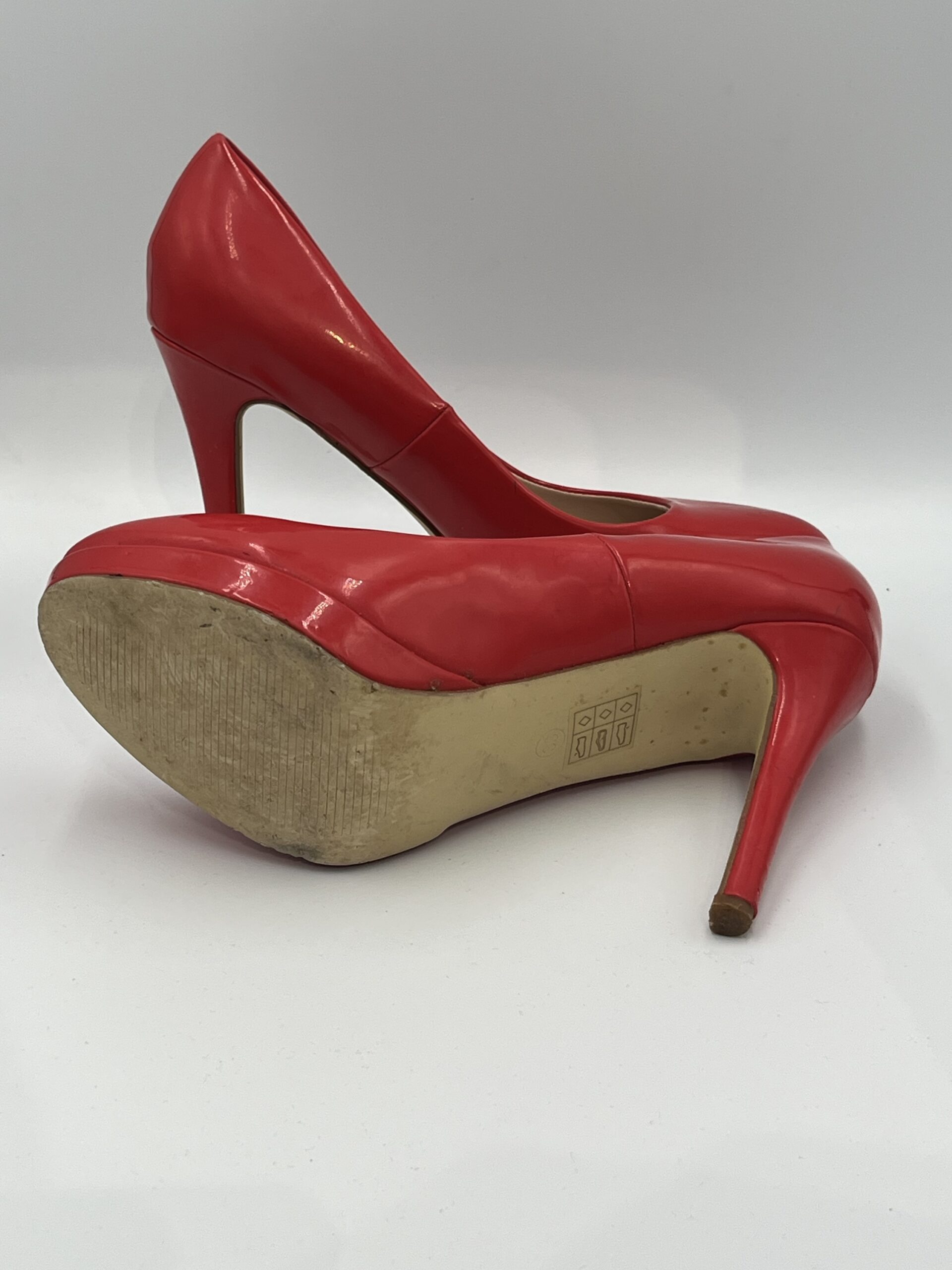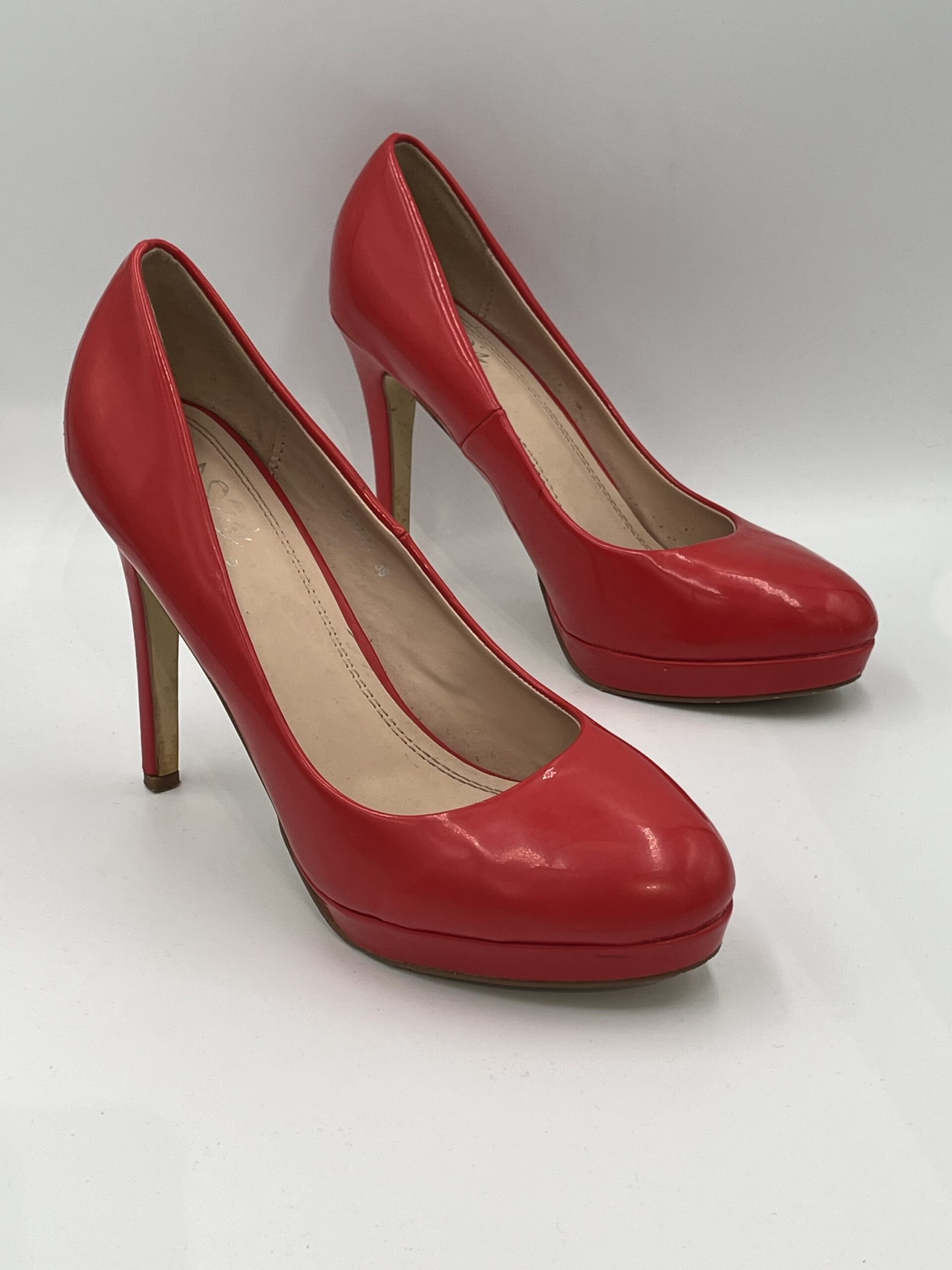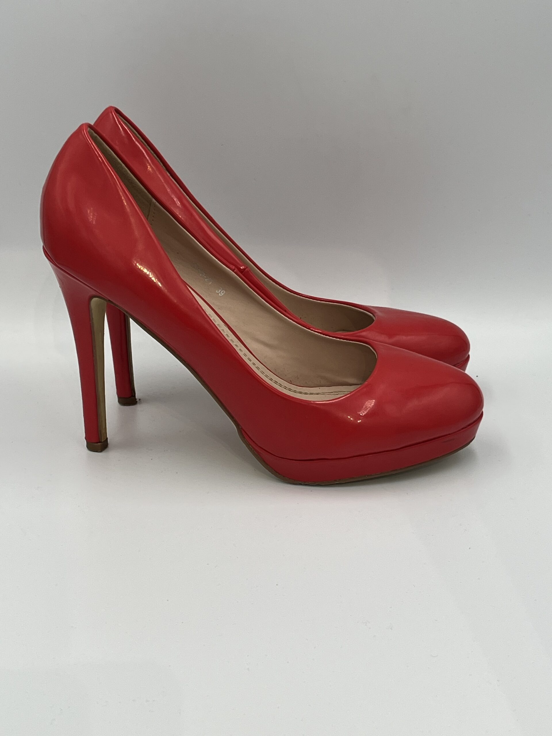Pantofi Small Swan, culoare rosu, toc 10cm, platforma 2cm, marime 39, interior 24,5cm, purtati, stare foarte buna