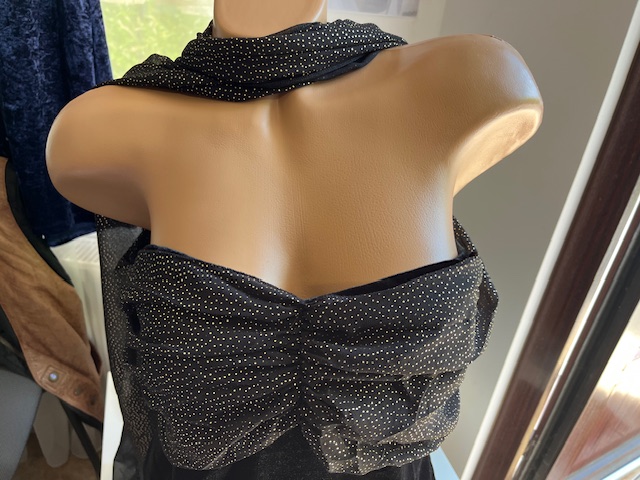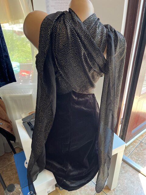 Descoperă farmecul subtil al acestei rochii Avon, perfectă pentru seri speciale sau evenimente de vară. De culoare neagra și un decolteu rafinat, rochia oferă un echilibru între senzualitate și confort. Croiala lejeră avantajează orice siluetă, iar materialul fluid asigură o purtare plăcută. Disponibilă în mărime 42-44