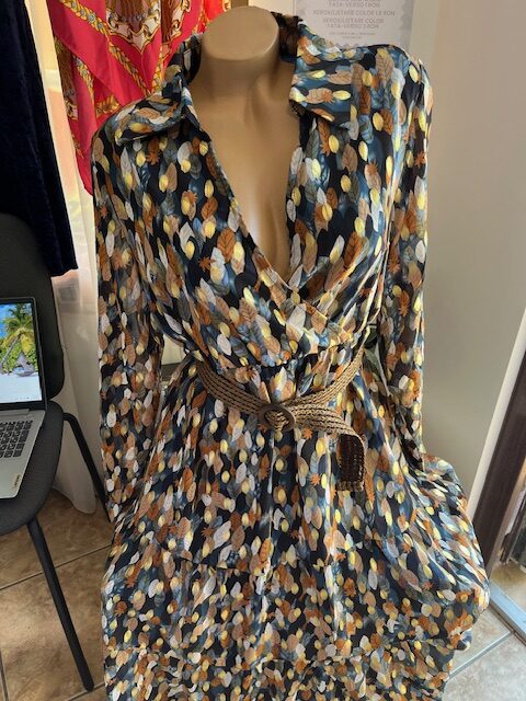 Adaugă un strop de prospețime și culoare garderobei tale cu această rochie multicoloră de la Rosa Fashion! Cu un design fluid și o combinație vibrantă de nuanțe, rochia este ideală pentru zilele călduroase sau evenimente casual-chic. Confortabilă și ușor de purtat, este potrivită pentru siluetele mai generoase, punând în valoare feminitatea în cel mai natural mod.