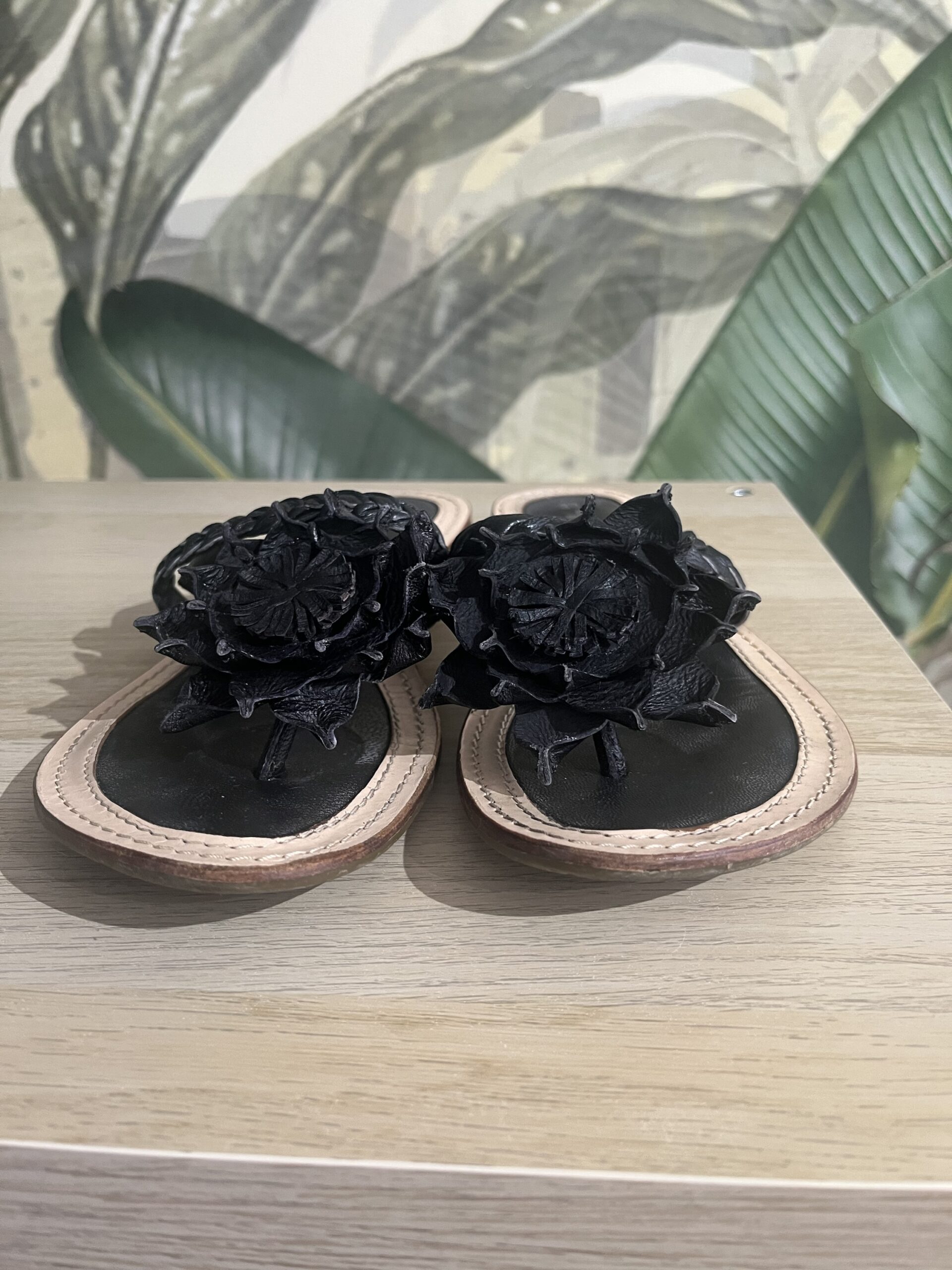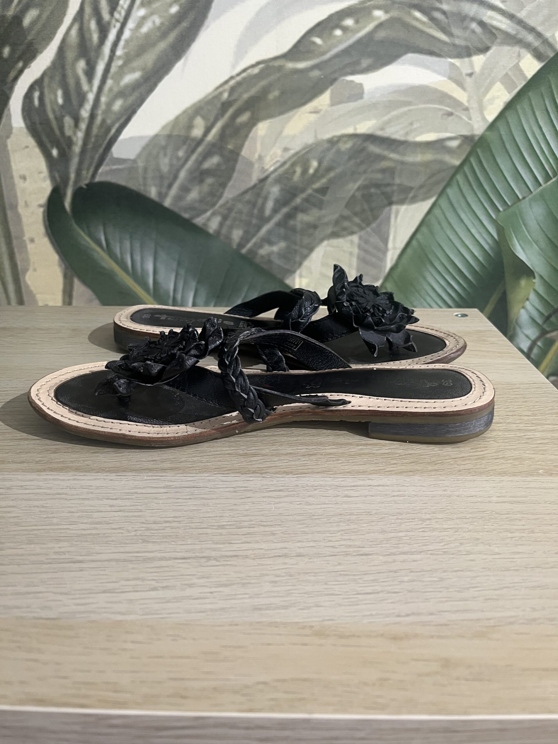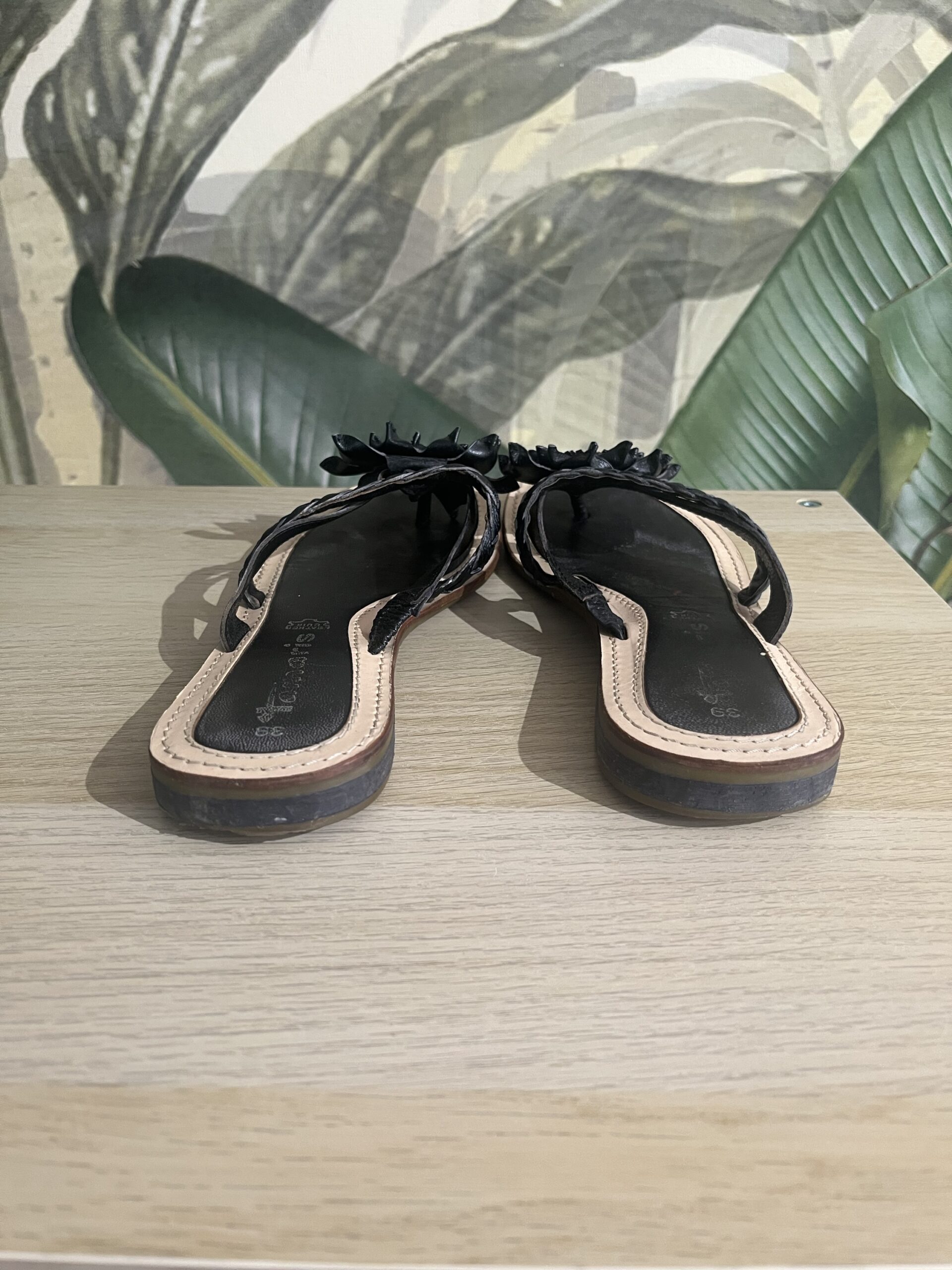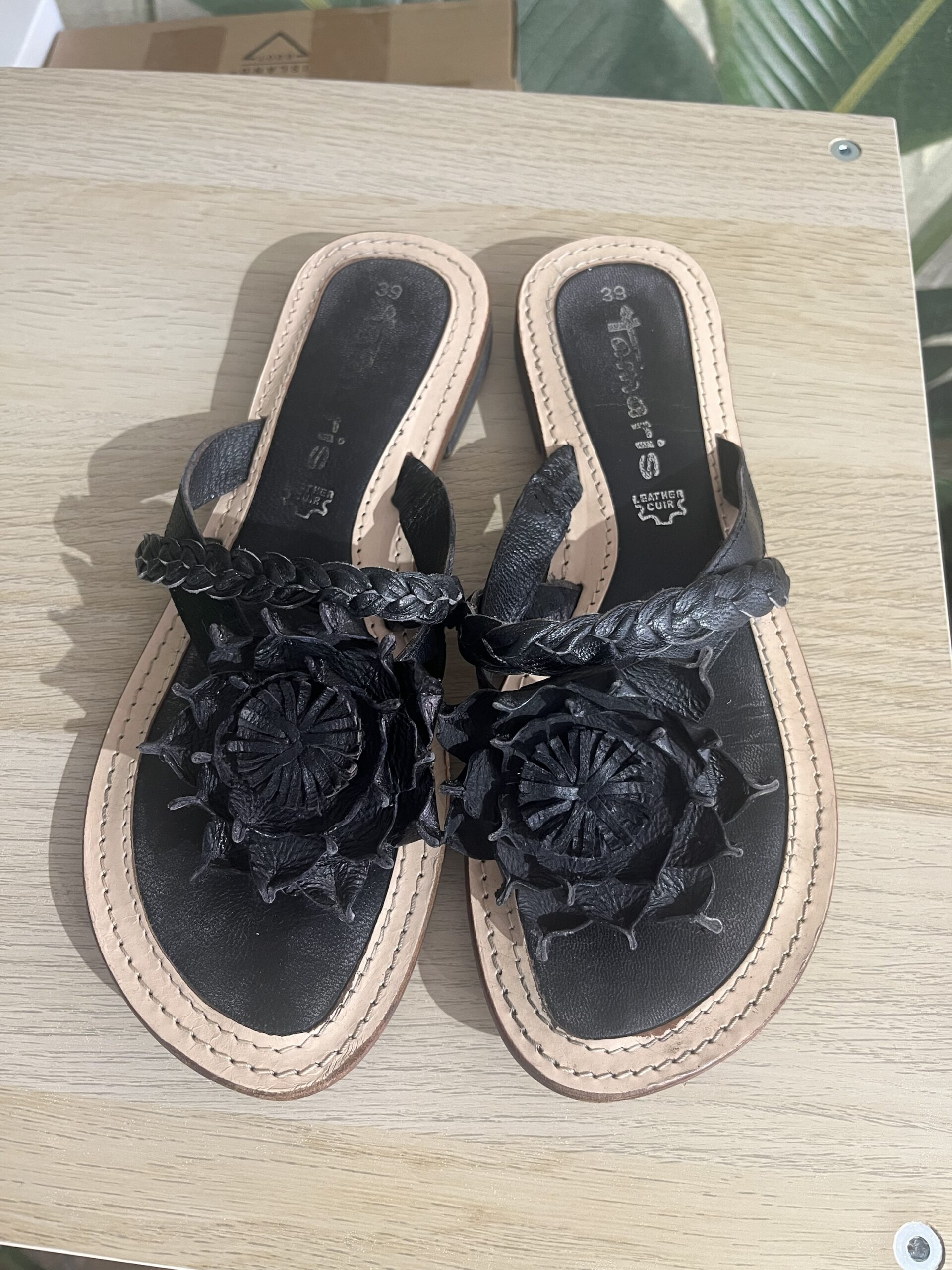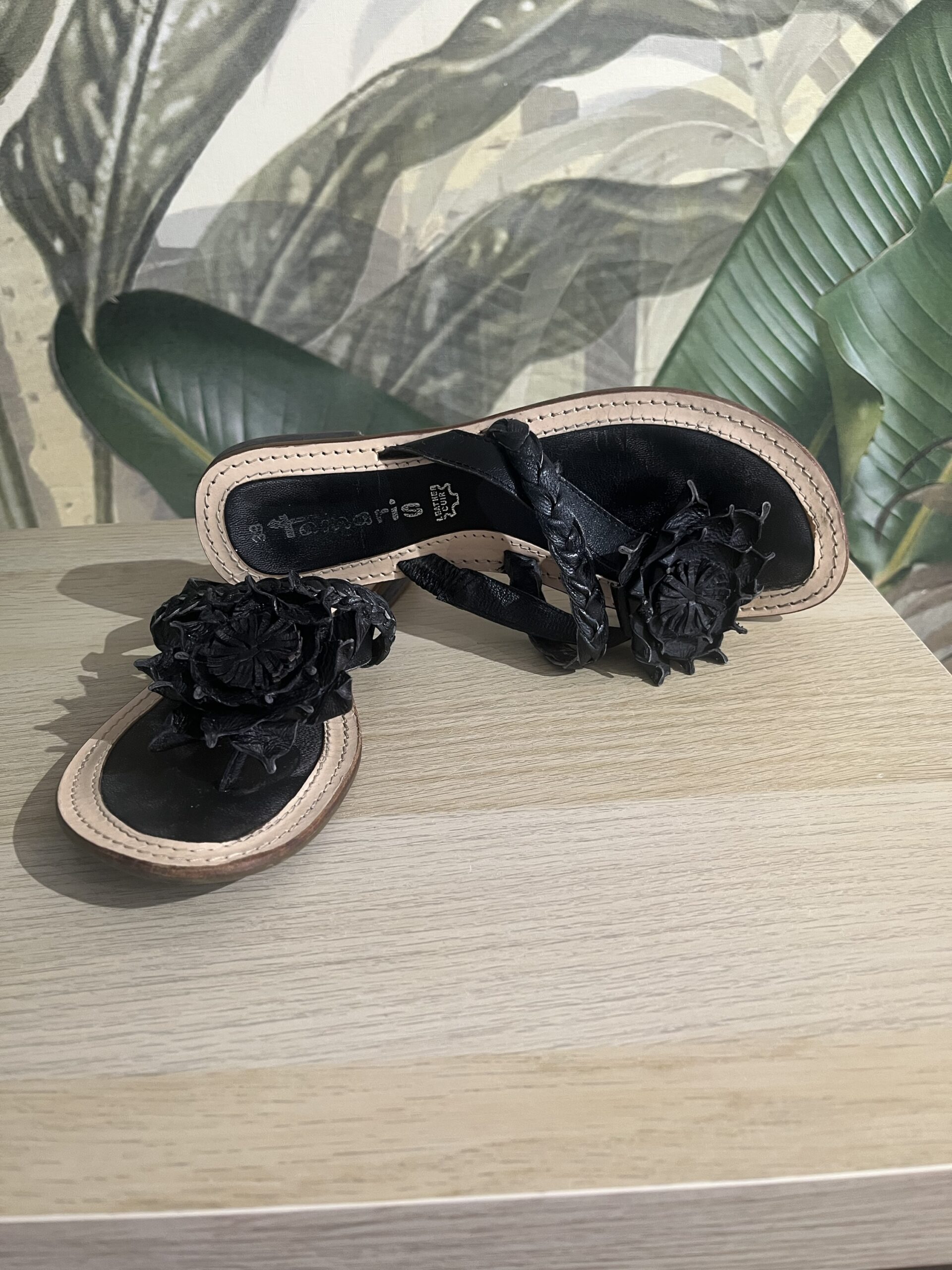 Sandale Tamaris, din piele naturala, culoare negru / bej, marime 39, interior 23,5, purtate, stare foarte buna