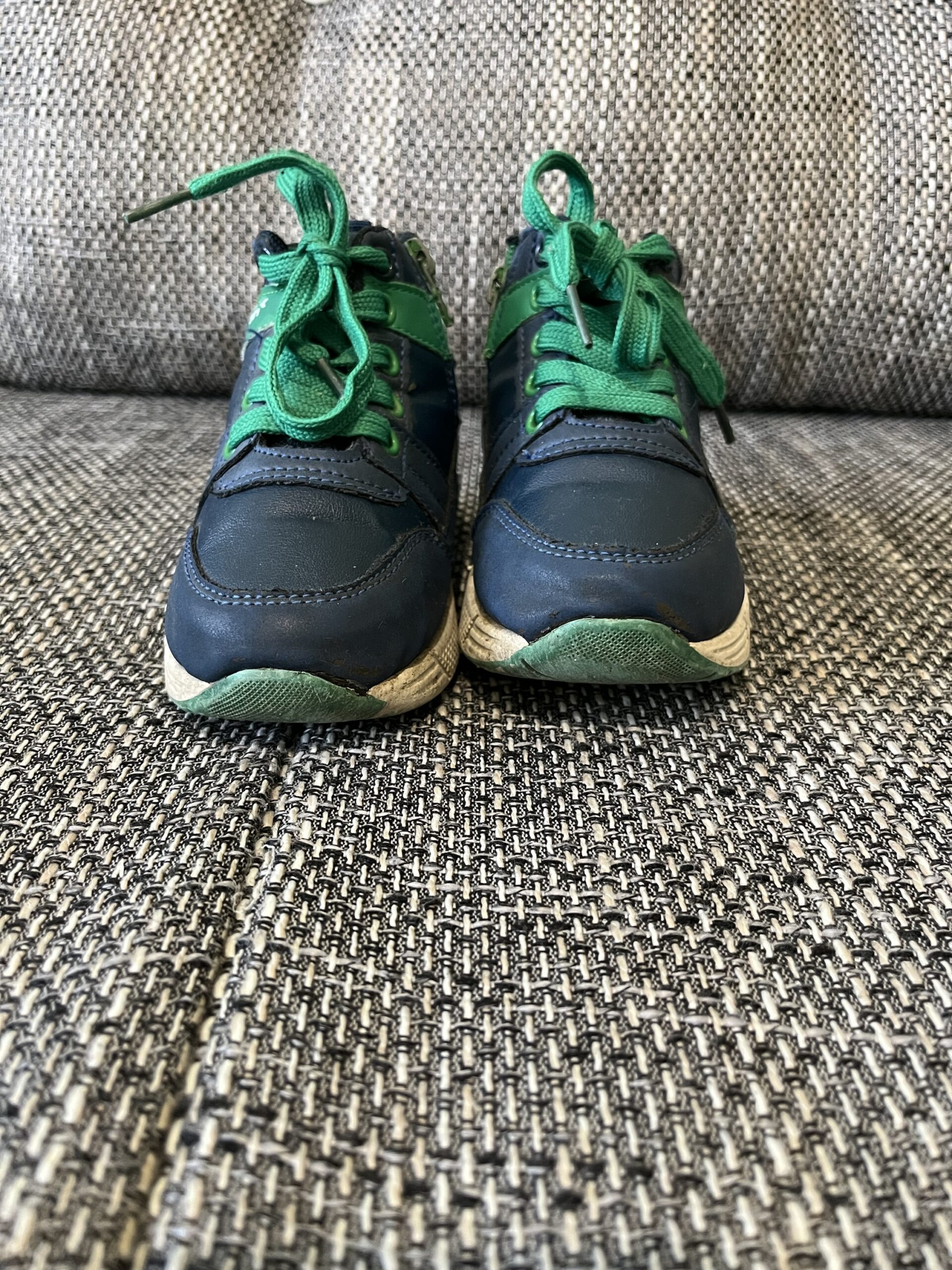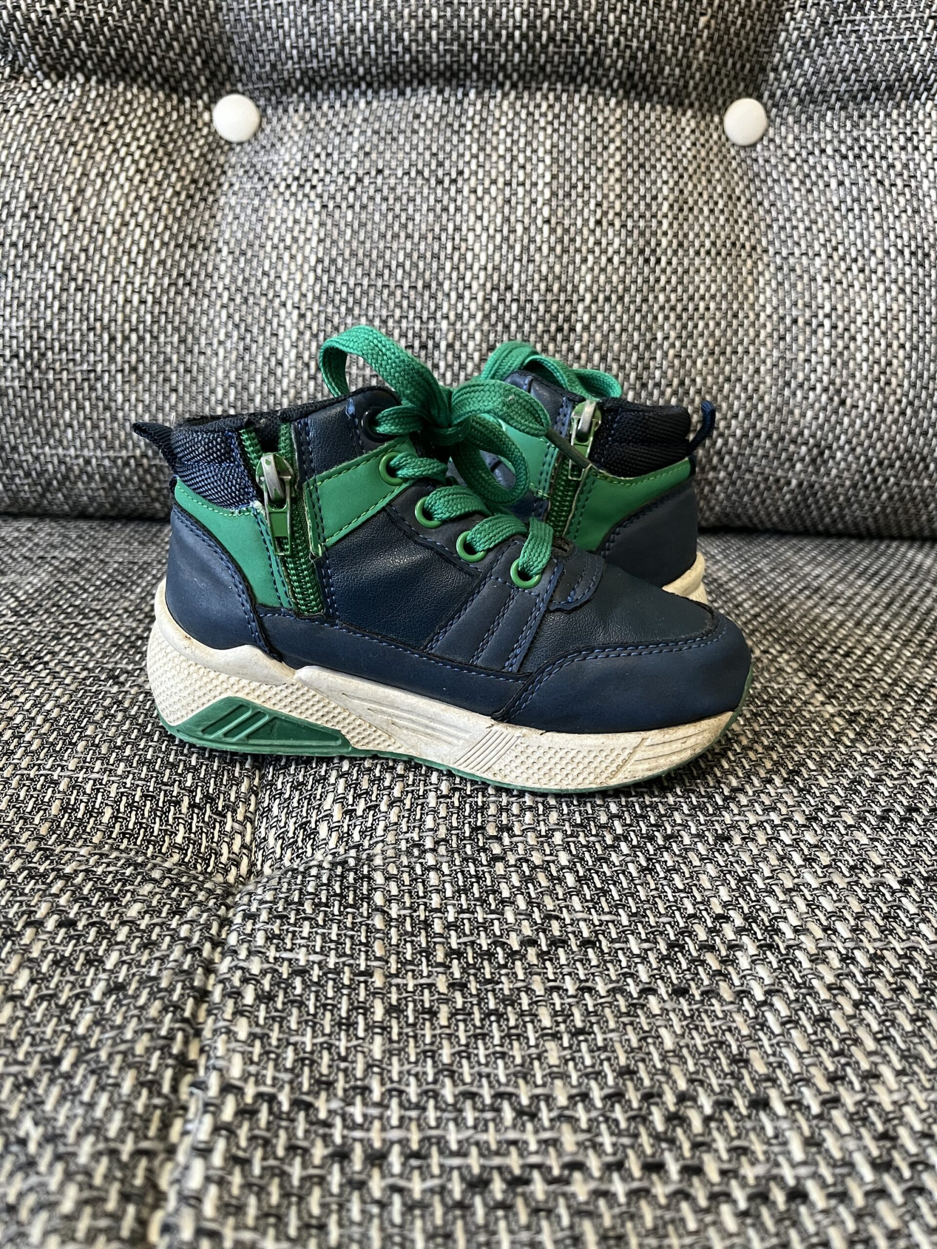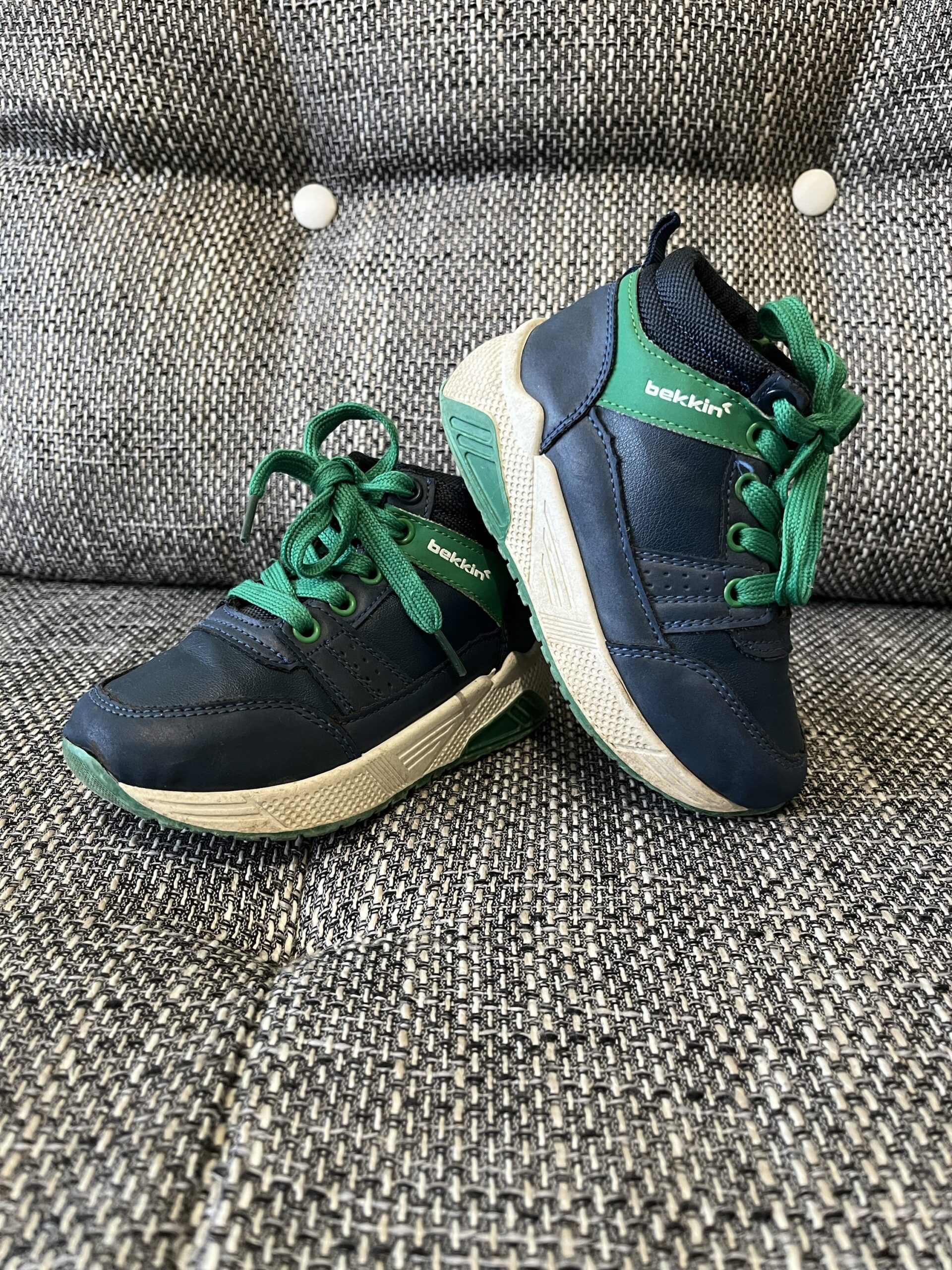 Sneakers Bekkin, culoare bleumarin / verde, inalte peste glezna, cu siret si fermoar lateral, marime 27, interior 16,5cm, purtati, stare buna