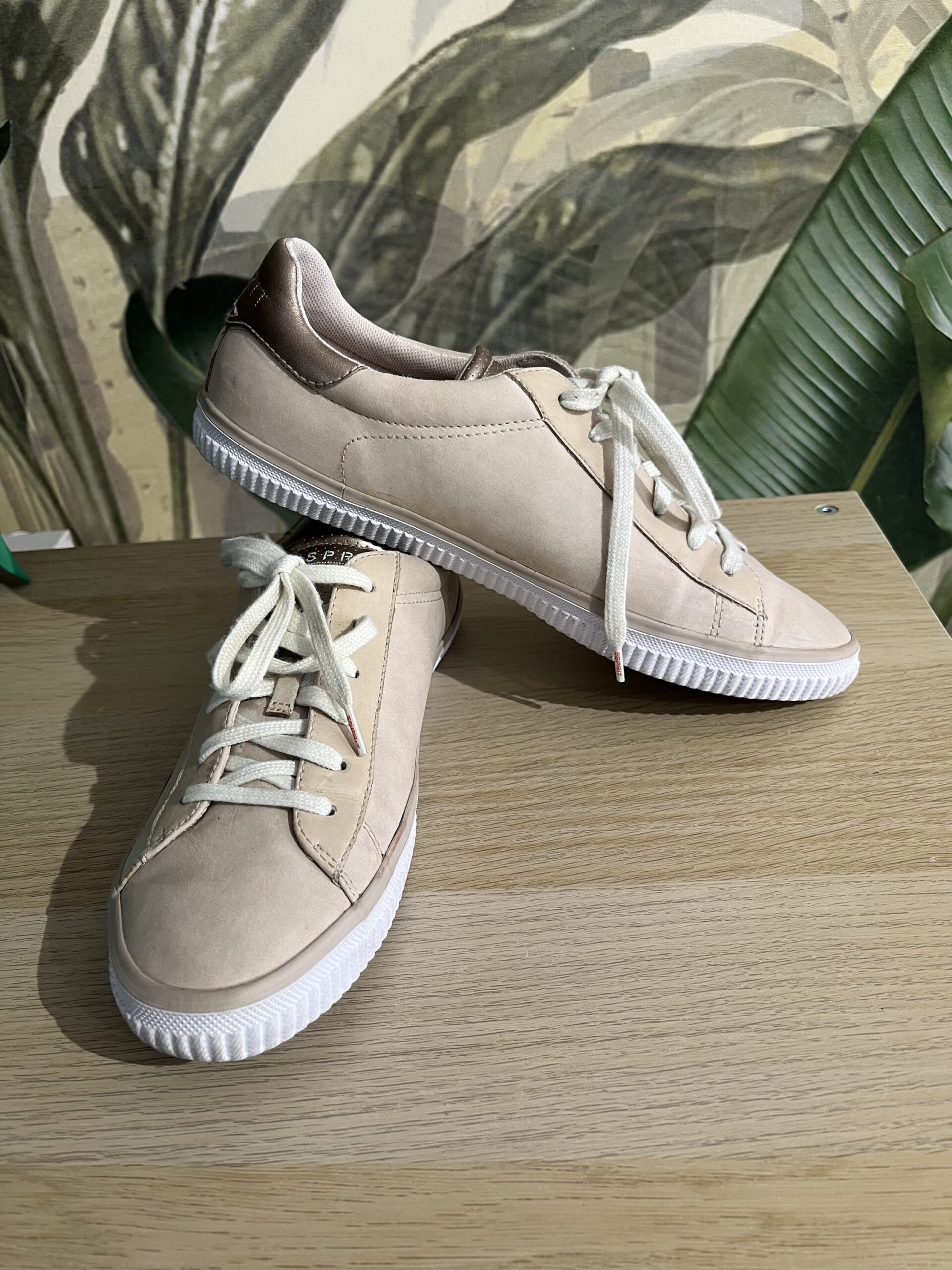 Sneakers Esprit, material sintetic, culoare bej, marime 41, interior 25,5cm, purtati, stare buna
