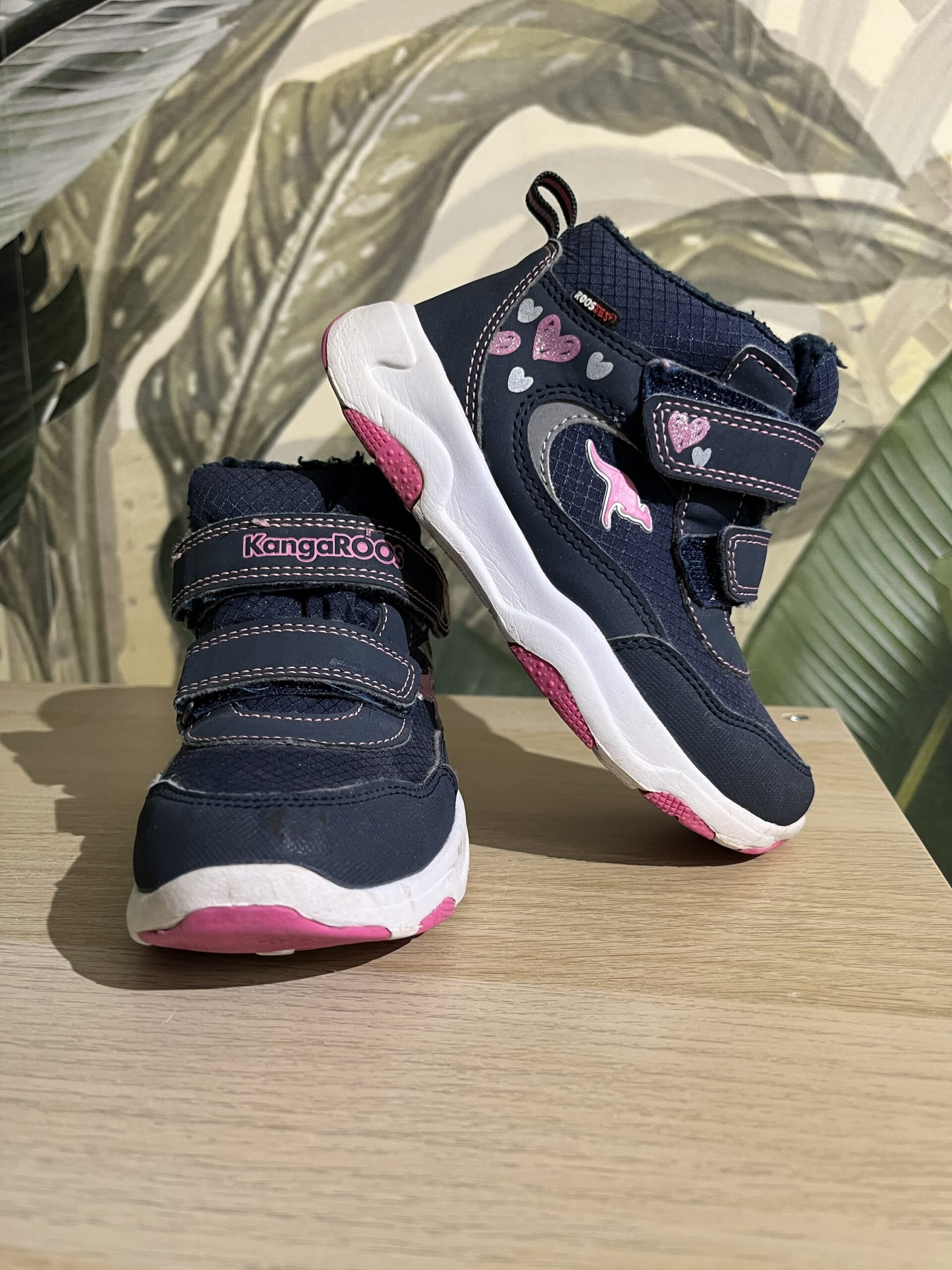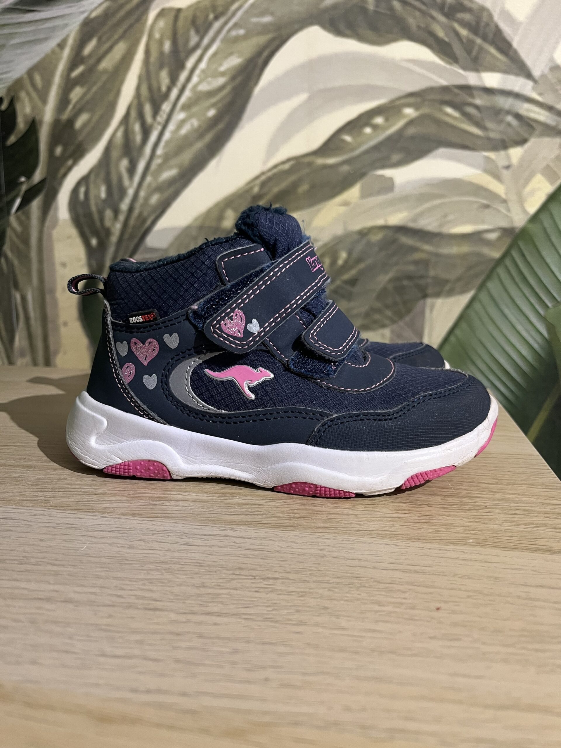 Sneakers Kangaroos, culoare albastru/ roz, material impermeabil RoosTex, inchidere cu scai, marime 28, interior 17,5cm, purtati, stare foarte buna