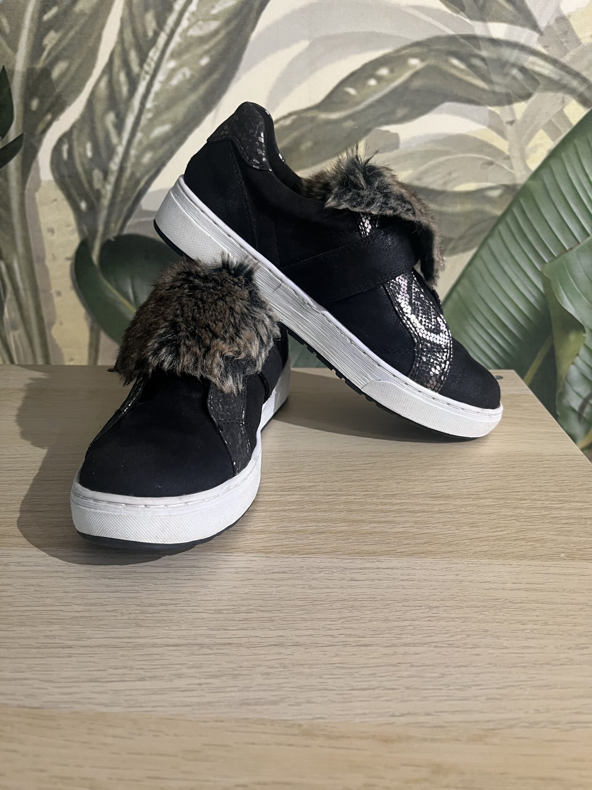 Sneakers Marco Tozzi, din material textil, culoare negru, marime 37, interior 23,5-24cm, purtati, stare foarte buna