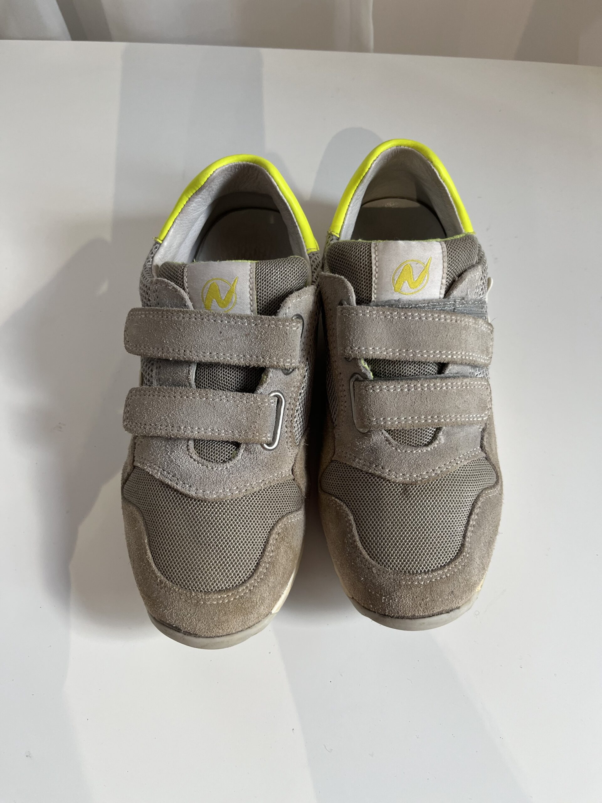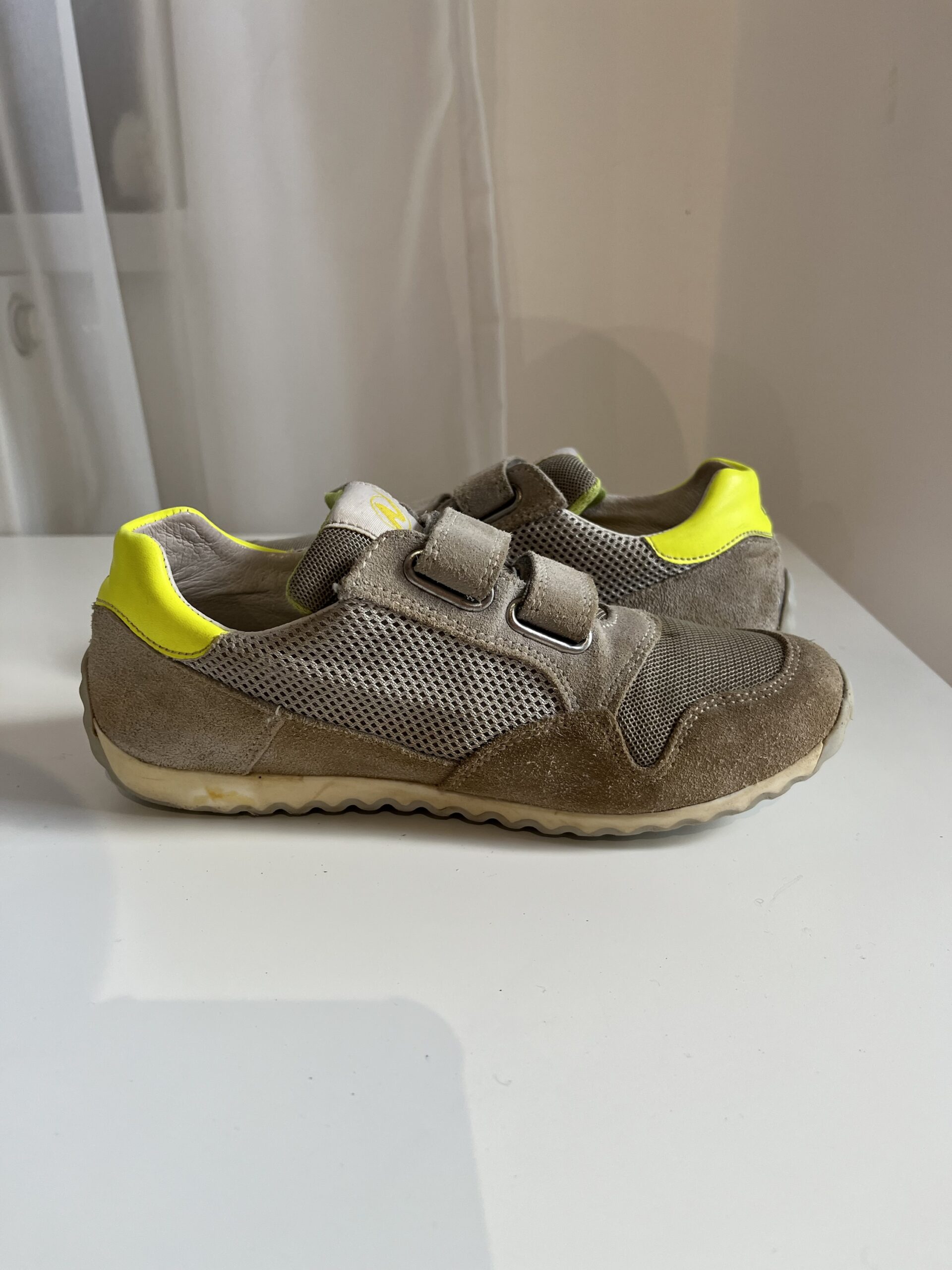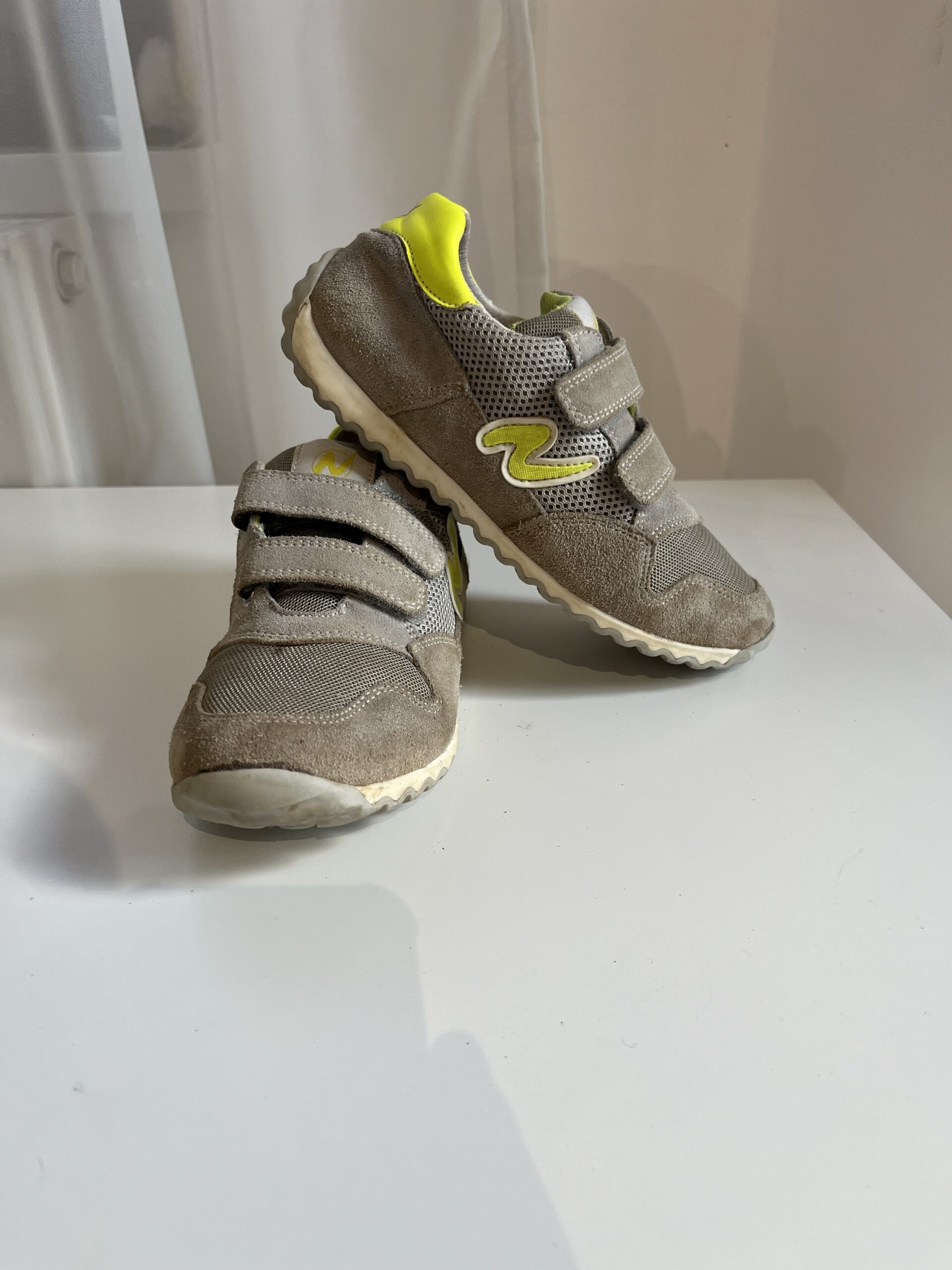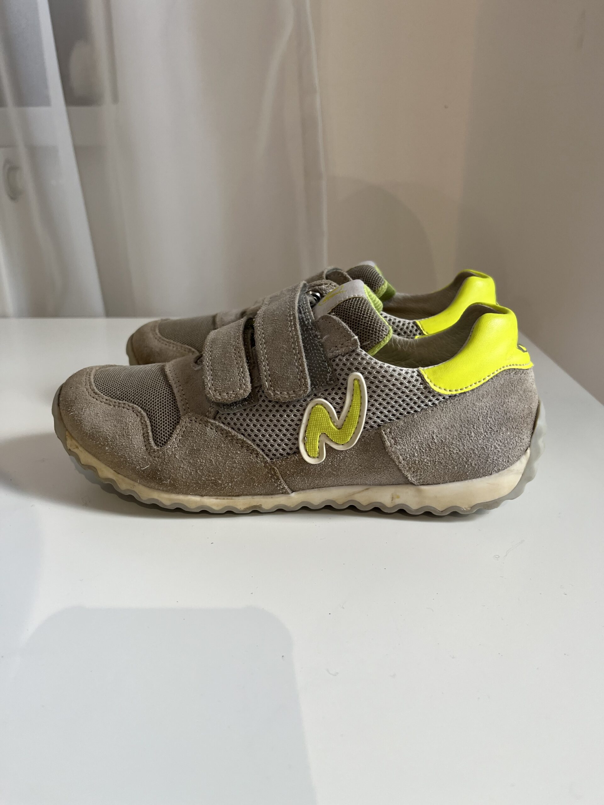 Sneakers Naturino “Sammy”, din piele naturală, inchidere cu scai, culoare gri / kaki, marime 32, interior 20,5cm, purtati, stare foarte buna