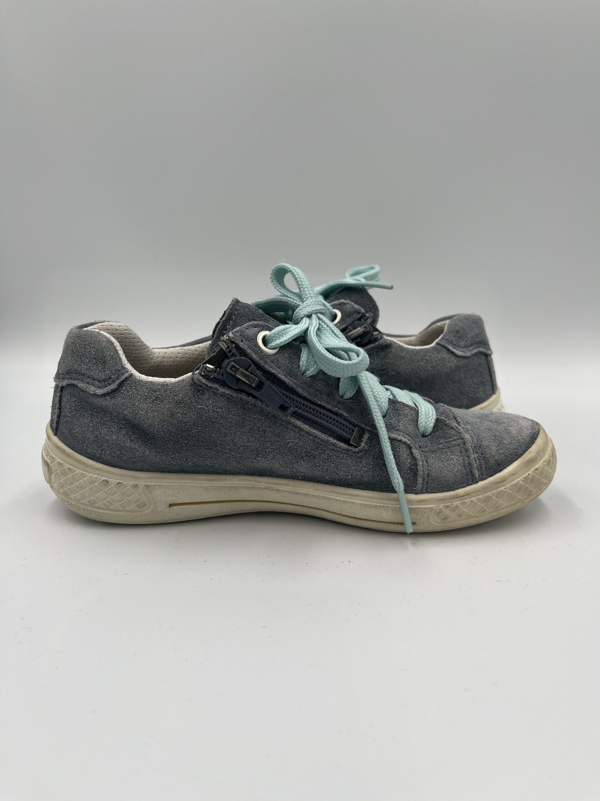 Sneakers SuperFit, dinnpiele naturala, culoare albastru, inchidere cu siret si fermoar pentru incaltare usoara, marime 30, interior 18,5cm, purtati, stare foarte buna